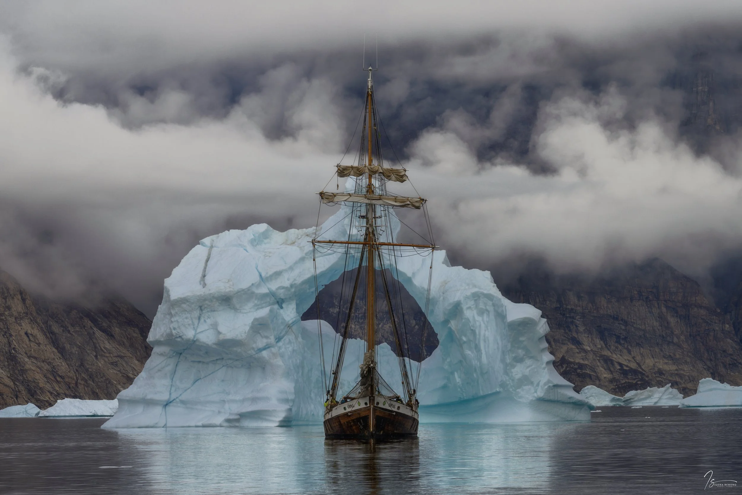 Naar de derde dag keek ik enorm uit. We gingen zeilen door het adembenemend mooie Øfjord, omgeven door de op sommige plekken wel twee kilometer hoge rotswanden van Renland en Milne Land. Het weer was ons gunstig gezind, waarbij laaghangende bewolking zorgde voor mooie mistflarden. Ditmaal bleken er veel meer ijsbergen in het Øfjord aanwezig dan in andere weken, wat mooie kansen bood. Voor mij persoonlijk was dit het mooiste gedeelte van de reis, temeer daar wij een groot deel van de route optrokken met de schooner Ópal, hetgeen een geweldig foto-onderwerp bood. We stopten bij enkele mooie ijsbergen en gletsjers.